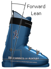 All ski boots tilt the lower leg forward, so that your ankles and knees are bent when you stand in ski boots. Forward lean is normally set at about 14° but can often be adjusted as far as 17°. The cuff of the boot will not let your ankle move sideways, or let you straighten your ankle, but the flex of the boot will enable your shin to move further forwards by a few more degrees.