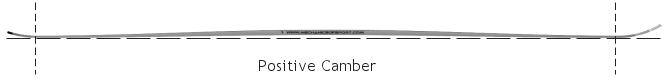 This a section where the ski arches into the air, supported by a point at each end where the ski touches the snow. Positive camber actively pushes its length into the snow when the ski is weighted, providing the most edge contact and grip possible on hard packed snow. Therefore the longer a section of positive camber is, the better the ski will be for skiing on a hard packed piste.