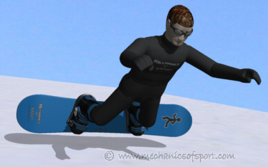 From the diagram below you can see that if the centrifugal force created is greater than gravity the edge will release upwards almost instantly and the snowboarder will come into the air. The maximum sideways velocity at which the edge stays in the snow (Vmax) can be worked out. Then Vmax can be used to find out the worst case scenario for this type of edge catch.